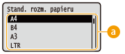 Wspólne ustawieniaUstawienia są takie same, jak dla opcji <Źródło papieru> w Menu konfiguracji. Wprowadzone tutaj ustawienia zostaną również zastosowane do ustawień <Źródło papieru>. Gwiazdka (*)Ustawienia oznaczone symbolem gwiazdki (*) mogą nie być wyświetlane w przypadku niektórych używanych opcji lub innych ustawień. |