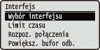 ![]() | Wszystkie ustawienia z listy dotyczące interfejsów komunikacji z komputerem i urządzeniem USB są opatrzone krótkim opisem. Ustawienia domyślne oznaczone są przy pomocy znaku ( ). |