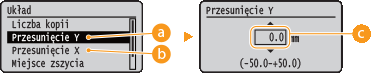 Wartości przesunięcia<Przesunięcie Y> ![]() | <Przesunięcie X> ![]() |