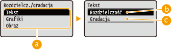 Można wybrać typ danych obrazowych, dla których ustawienia zostaną zmienione. W przypadku znaków należy wybrać opcję <Tekst>, w przypadku linii i rysunków opcję <Grafiki>, a w przypadku obrazów, takich jak zdjęcia, opcję <Obraz>.