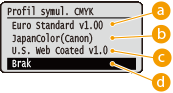 Wybranie ustawienia dla tej pozycji opcji <Włącz> nie pozwoli na wykonanie nadruku, jeśli ustawienie opcji <Profil symul. CMYK> jest inne niż <Brak>. |