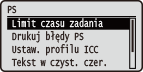 Pozwala określić, czy w razie wystąpienia błędu Post Script, ma być drukowana strona błędu.