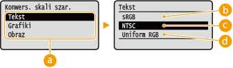 Tekst sRGB NTSC  Uniform RGB Grafiki sRGB NTSC  Uniform RGB Obraz sRGB NTSC  Uniform RGB |