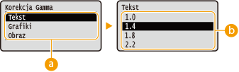 Ten element należy ustawić, jeżeli ma być dostosowywana jasność wydruków. <1.4> to ustawienie standardowe (bez korekcji), a im wyższa wartość ustawienia, tym ciemniejszy będzie wydruk.