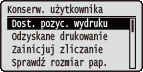 Po wybraniu opcji <Wydruk z POP> ustawienia następujących elementów przestają być aktywne. <Częst. spraw. tonera> Częst. spraw. tonera <Okr.częst.spr.tonera> Okr.częst.spr.tonera W przypadku wybrania opcji <Wydruk z POP> zaleca się skonfigurowanie także następujących elementów. <Prędkość drukow. POP> <Autom. kalibrac. POP> |