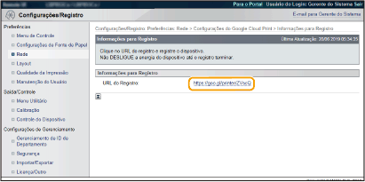 Ative a função Google Cloud Print da máquina. Também pode desativar a função Google Cloud Print da máquina.