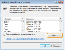 Para definir o protocolo de impressão para IPP ou IPPS, instalar o controlador da impressora utilizando o procedimento abaixo correspondente ao sistema operativo do seu computador. O controlador da impressora está incluído no CD-ROM/DVD-ROM do Software do Utilizador fornecido com a máquina. Insira o CD-ROM/DVD-ROM do Software do Utilizador na unidade do computador antes de iniciar o procedimento.