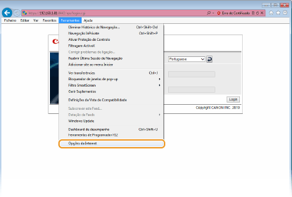 Introduza “https://<endereço IP da máquina>/” na barra de endereço e prima a tecla [ENTER].
