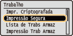 para selecionar <Impressão Segura> e prima