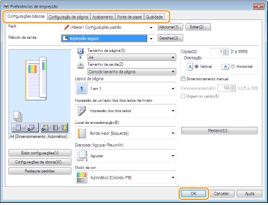 Especifique as definições de impressão conforme necessário e clique em [OK].