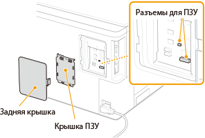 В этом разделе рассматривается порядок установки в аппарат дополнительного модуля ПЗУ. Для использования ПЗУ его необходимо подключить к разъемам ПЗУ под задней крышкой аппарата. Перед установкой ПЗУ ознакомьтесь с мерами предосторожности из раздела Установка. | ![]() |