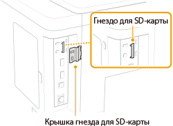 В этом разделе рассматривается порядок установки и инициализации SD-карты. Установите SD-карту в гнездо SD-карты на левой панели аппарата. Перед установкой SD-карты ознакомьтесь с мерами предосторожности, приведенными в разделе Установка. Обратите внимание, что данные в аппарате, которые хранятся на SD-карте, шифруются. Это гарантирует безопасное использования SD-карты в компьютере или в прочих ситуациях, поскольку зашифрованные данные с SD-карты защищены от неуполномоченного извлечения. | ![]() |