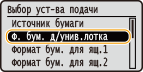 для выбора <Ф. бум. д/унив.лотка> и нажмите