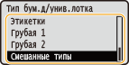 Если приходится часто менять тип загружаемой бумаги, можно задать <Смешанные типы>, что позволяет избежать изменения настройки типа бумаги при каждом выполнении печати. Однако обратите внимание, что при этом аппарат сможет печатать даже в том случае, если настройка типа бумаги в драйвере принтера не совпадает с типом бумаги, фактически загруженной в аппарат.