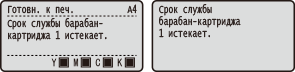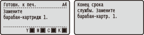 Когда приближается срок замены барабан-картриджа, на экране отображается сообщение. Обратите внимание, что качество печати существенно снизится, если продолжить печать, не выполняя никаких действий. Состояние барабан-картриджей можно также проверить на дисплее.