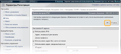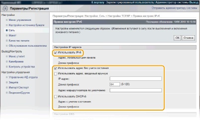 Установите флажок [Использовать IPv6] и настройте необходимые параметры.