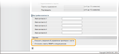 Если этот флажок установлен, доступ к аппарату приложений, в которых используется протокол SNMP (например, программное обеспечение Canon imageWARE Series), может оказаться невозможным.