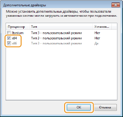 2 | Установите флажок, соответствующий битовой архитектуре других компьютеров, и щелкните [OK]. ![]() Выберите из следующего списка дополнительные драйверы для операционной системы сервера печати.