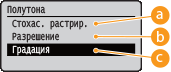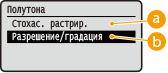 Когда для параметра <Стохас. растрир.> установлено значение <Вкл.>, <Разрешение/градация> не отображается.