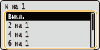 Выберите, требуется ли печатать несколько страниц на одном листе бумаги, последовательно располагая их начиная с левого верхнего угла. Например, для печати четырех страниц на одном листе выберите <4 на 1>. Кнопками