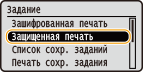 для выбора <Защищенная печать> и нажмите