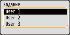 Если на SD-карте хранятся защищенные документы двух и более пользователей, перед показанным сверху экраном отображается показанный ниже экран выбора пользователя. Выберите нужное имя пользователя и нажмите