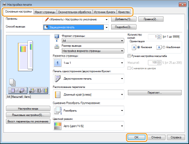Укажите требуемые настройки печати и щелкните [ОК].