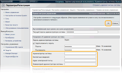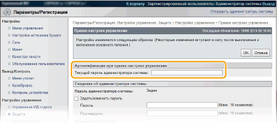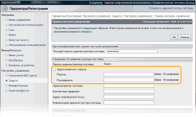 Для изменения настроек, заданных в аппарате с помощью Удаленного ИП, требуются полномочия администратора. Выполните приведенную ниже процедуру для изменения пароля администратора системы. Информация о настройках пароля администратора системы очень важна для обеспечения безопасности аппарата, поэтому пароль администратора системы должен быть известен только администраторам.