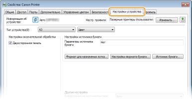 Щелкните вкладку [Настройки устройства] и настройте необходимые параметры.