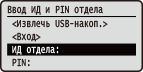 Если функция управления идентификаторами отделов включенаКогда пользователи пытаются с панели управления распечатать файл с запоминающего устройства USB или документ, хранящийся на SD-карте, открывается экран аутентификации. Введите идентификатор отдела и PIN-код, выберите пункт <Вход> и нажмите  . | |