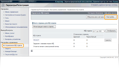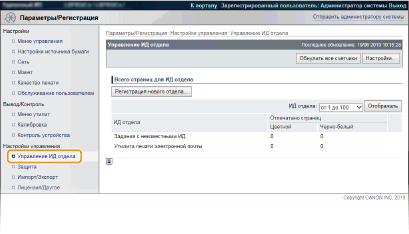 Щелкните [Управление ИД отдела] и зарегистрируйте или отредактируйте имена подразделений.