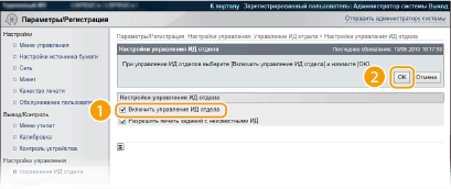 Установите флажок [Включить управление ИД отдела] и щелкните [OK].