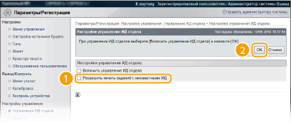 Снимите флажок [Разрешить печать заданий с неизвестными ИД] и нажмите [OK].