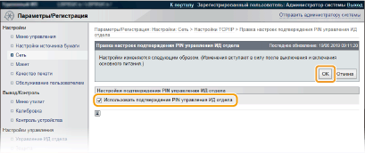 Установите флажок [Использовать подтверждение PIN управления ИД отдела]