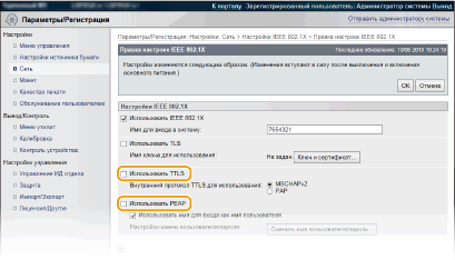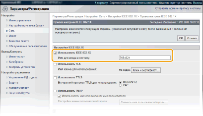 Установите флажок [Использовать IEEE 802.1X], введите имя для входа в систему в поле [Имя для входа в систему] и задайте необходимые параметры.