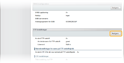 Eftersom fabriksinställningarna förhindrar användning från FTP-klienter måste du ange inställningar för att tillåta funktionen.