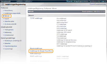 Blockera jobb när avdelnings-ID är okäntÄndra inställningar för Google Cloud Print