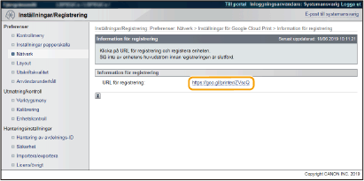 Klicka på länken för den webbadress som visas för [URL för registrering].