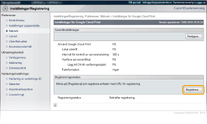 Aktivera Google Cloud Print-funktionen för enheten. Du kan även avaktivera Google Cloud Print-funktionen för enheten.
