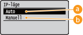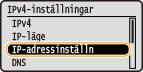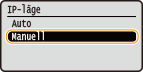 <Manuell>Välj det här alternativet för att konfigurera IP-adressinställningarna genom att manuellt ange en IP-adress.