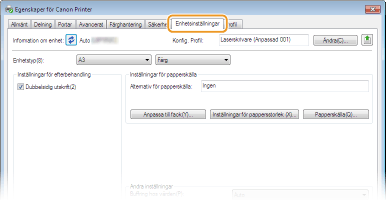 Klicka på fliken [Enhetsinställningar] och ange nödvändiga inställningar.