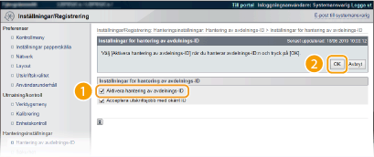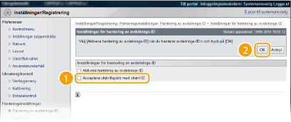 Markera kryssrutan [Aktivera hantering av avdelnings-ID] och klicka på [OK].