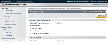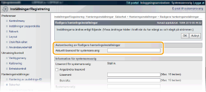 Ange lösenordet för systemansvarig i [Aktuellt lösenord för systemansvarig].