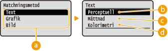 Välj den bilddatatyp som du vill ändra inställningar för. Välj <Text> för tecken, <Grafik> för linjer och figurer eller <Bild> för bilder som t.ex. foton.