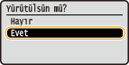 <Evet> seçeneğini belirleyin ve