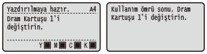 <Kullanım ömrü sona erdi. Dram Kartuşu N’yi değiştirin.>