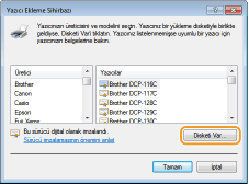 Yazdırma protokolünü IPP veya IPPS olarak ayarlamak için, aşağıda gösterilen ve bilgisayarınızın işletim sistemine uygun olan prosedürü kullanarak yazıcı sürücüsünü yükleyin. Yazıcı sürücüsü, makine ile birlikte gelen User Software CD-ROM/DVD-ROM (Kullanıcı Yazılımı CD-ROM/DVD-ROM'u) içinde bulunabilir. Prosedüre başlamadan önce User Software CD-ROM/DVD-ROM (Kullanıcı Yazılımı CD-ROM/DVD-ROM'u) öğesini bilgisayara yerleştirin.