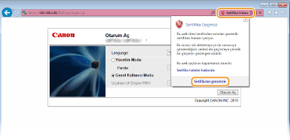 Adres alanına "https://<makinenin IP adresi>/" ifadesini girin ve [ENTER] tuşuna basın.