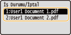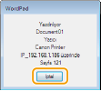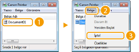 Uzak Kullanıcı Arabiriminden İptal EdilmesiYazdırmayı Uzak Kullanıcı Arabirimindeki [İş Durumu] sayfasından iptal edebilirsiniz: Yazdırma Belgelerinin Geçerli Durumunu Denetleme Bir uygulamadan iptal edilmesiBazı uygulamalarda aşağıdakine benzeyen bir ekran görüntülenir. Yazdırmayı [İptal] öğesine tıklayarak iptal edebilirsiniz. ![]() |