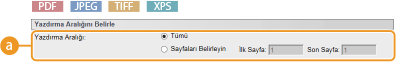 [Sayfaları Belirleyin] | Yazdırma aralığını belirtmek için seçin. Bu ayar, JPEG dosyaları için kullanılabilir değildir. |